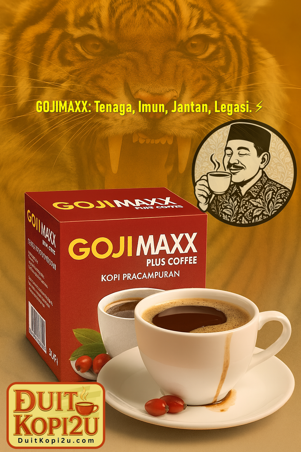 Hebat bos 💥—kalau hidup ni ibarat enjin, GOJIMAXX Coffee ni macam minyak premium yang bukan sekadar bagi tenaga, tapi upgrade sistem dalaman terus! Campuran 14 herba power termasuk Goji untuk awet muda, Maca untuk boost kejantanan, dan Kunyit Hitam yang digeruni kanser—ini bukan kopi biasa, ini senjata rahsia untuk lelaki dan wanita yang nak kekal aktif, sihat dan bertenaga luar biasa. Minum pagi-pagi, badan rasa ringan, otak pun tajam macam sniper!